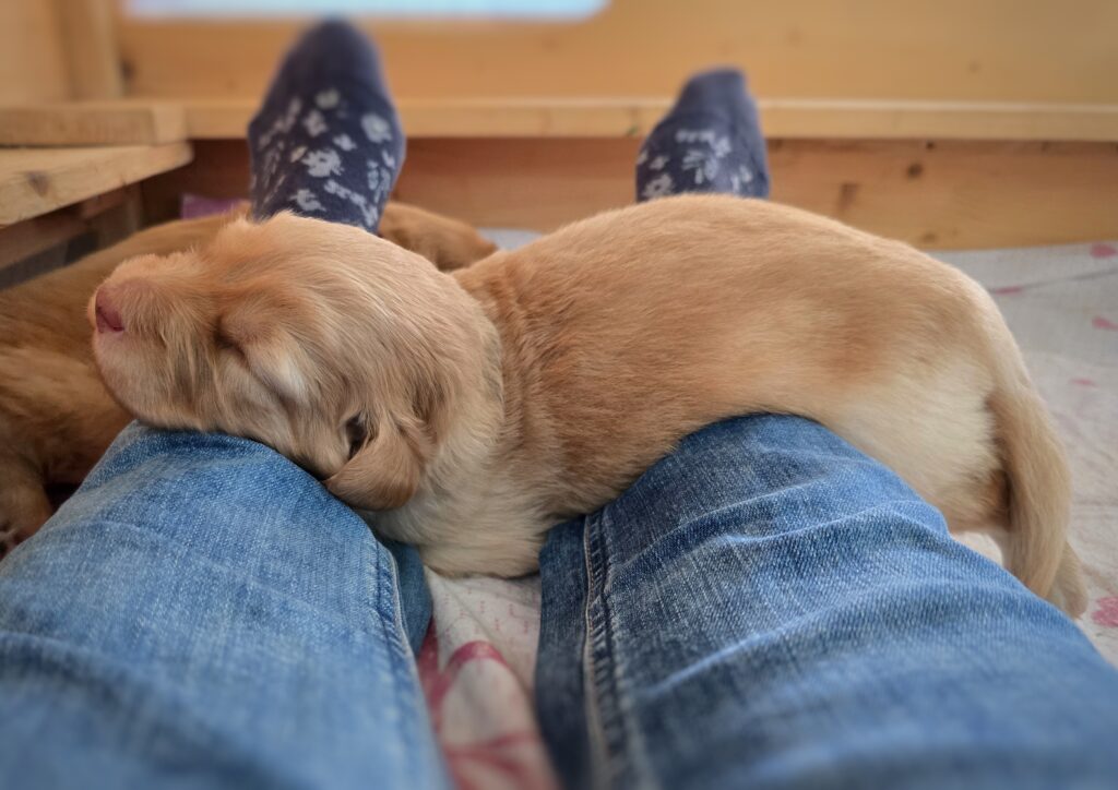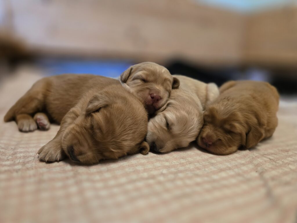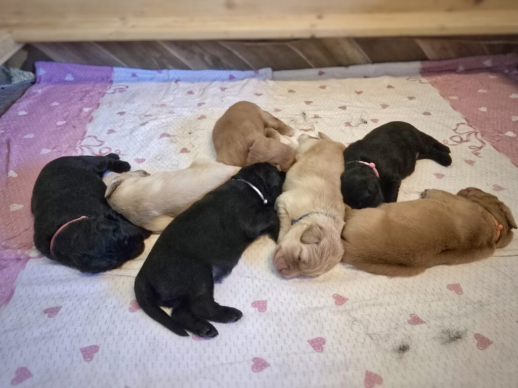 Es ist so schön unsere Welpies zu beobachten, wie sie sich verändern und entwickeln. Das Pigment kommt bei den Blonden langsam durch, die Augen öffnen sich und die ersten wackeligen Gehversuche werden gestartet.