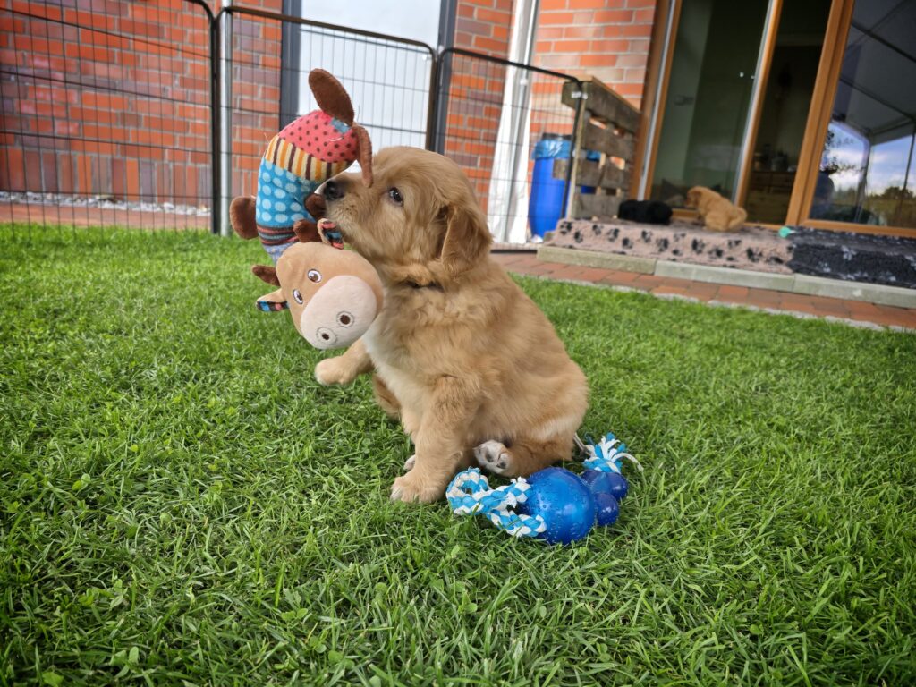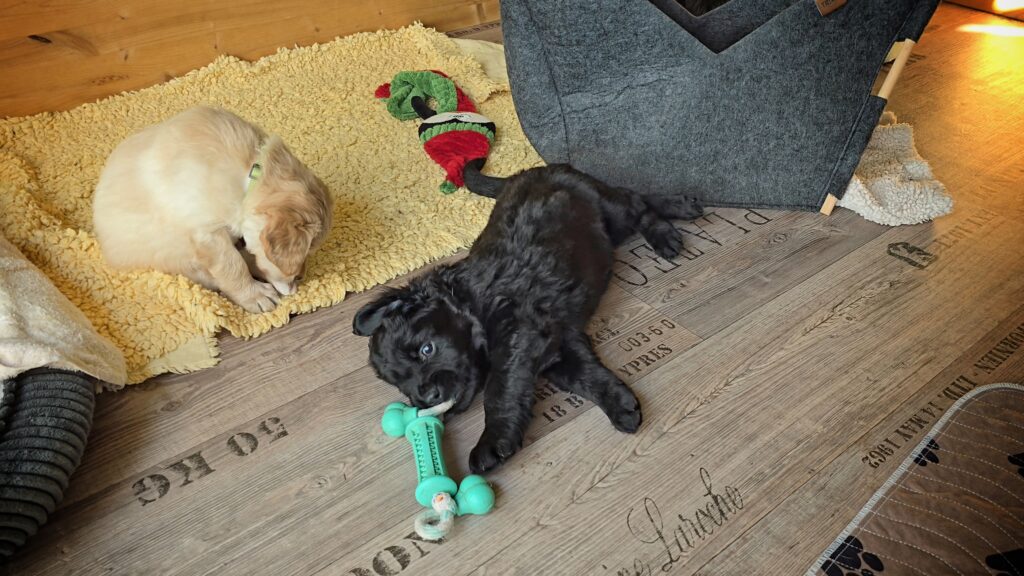 Die Kleinen wurden erst an einen kleinen Außenbereich gewöhnt, bis das große Außengehege eröffnet wird. Sie lieben es, man kann dort so schön spielen und laufen.